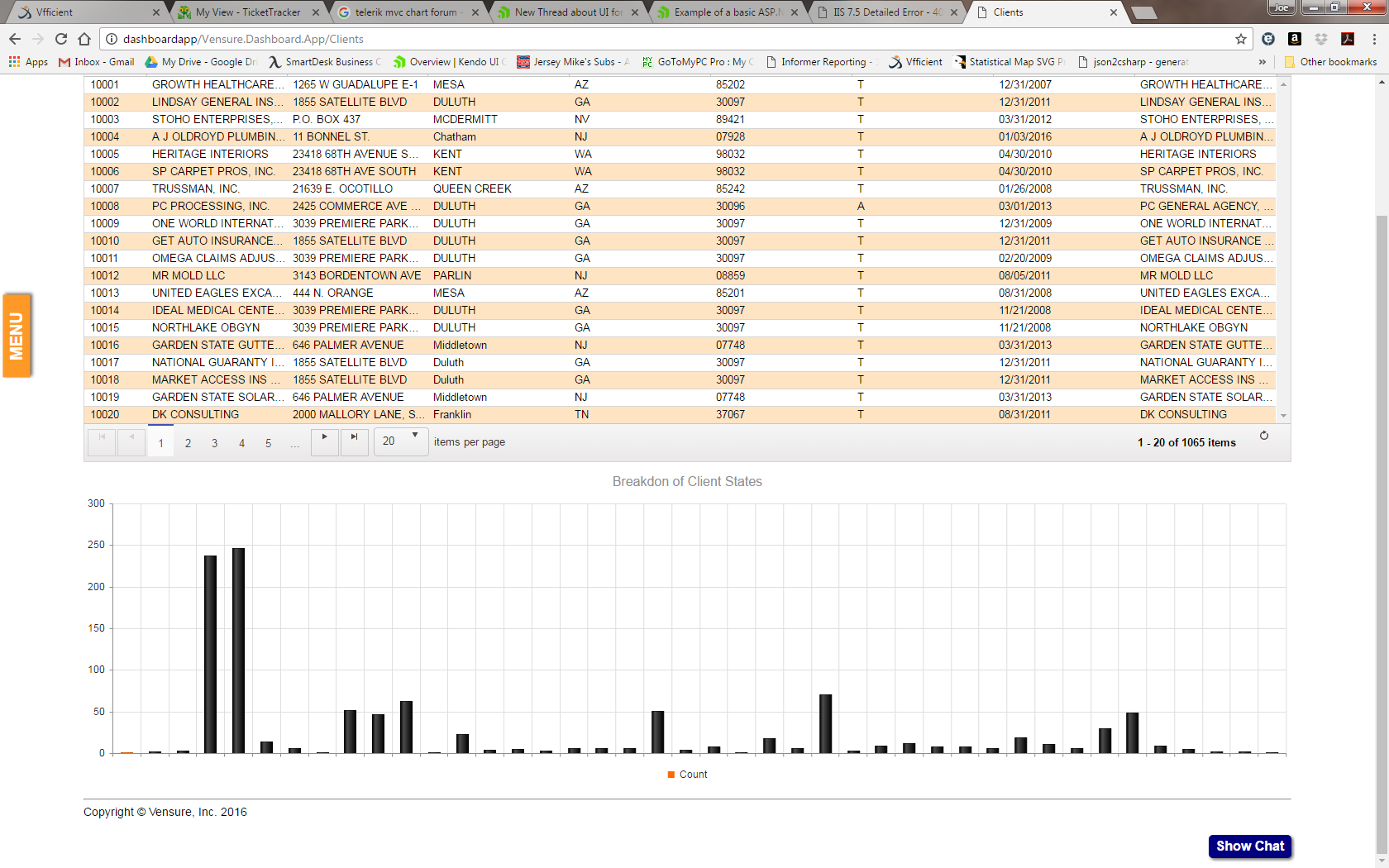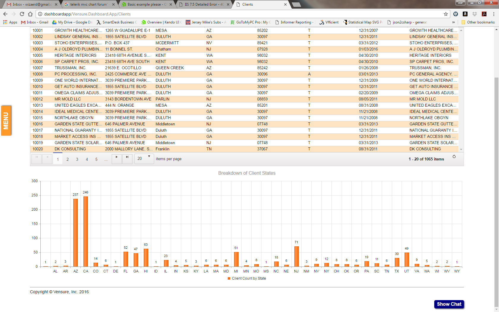 What I'd like is a Bar Chart, with the States alphabetically along the bottom, and the number of Clients in each state as the value of the bar.