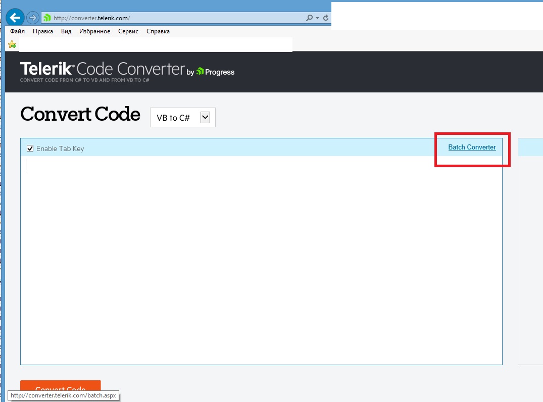 I have logged this case on the converter feedback portal. You can follow the item, add vote or comment on this page: Code Converter Feedback Portal - a Client reported that the batch page of the converter does not work