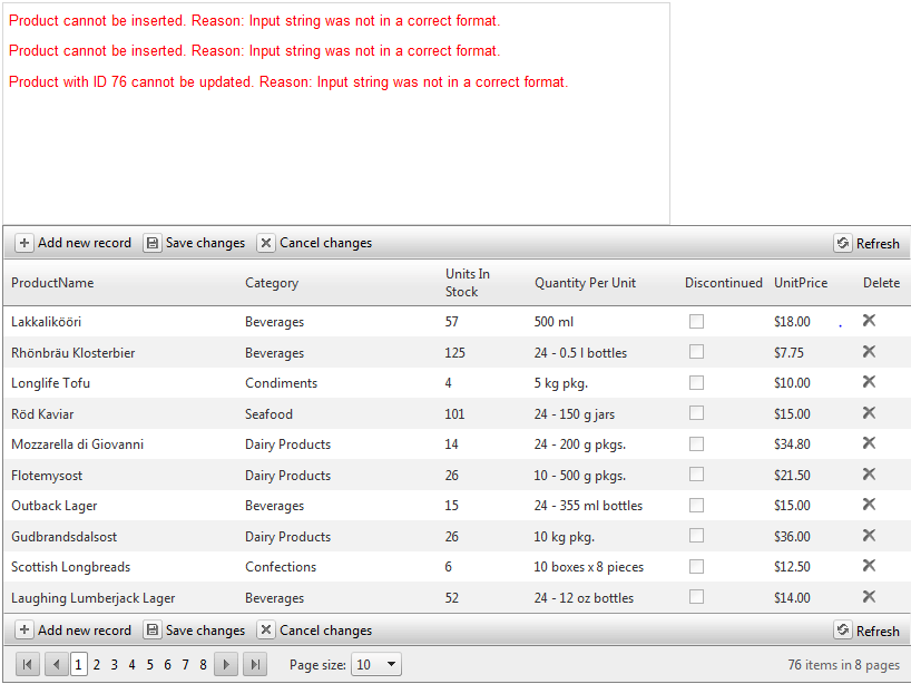 I get the following errors when I try to insert/edit a record in the Batch Editing demo at