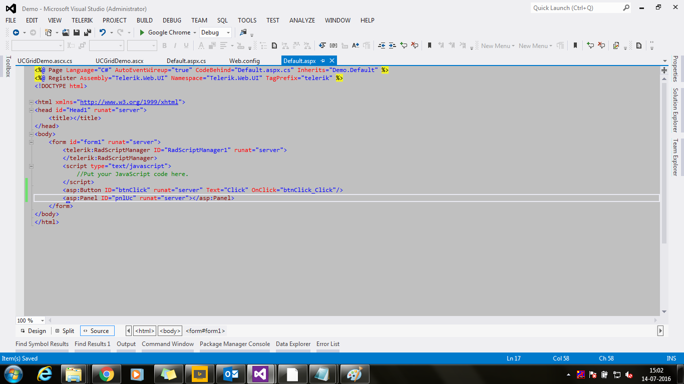 If I integrate same page given in above sample code with my live project it doesnot work.