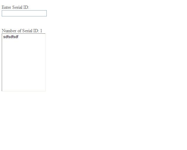I have a web application with a textbox that allow users to key in serial ID. After the user key in the serial ID in the textbox, they'll press enter and the serial ID will be displayed in a listbox (refer to serialid.jpg on how the UI looks like).