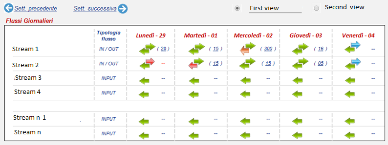 - Change the type of streams to be displayed (View 1 for example shows the customer streams. The View 2 is for suppliers streams)