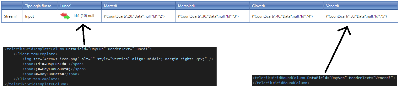 20. <telerik:GridBoundColumn DataField="Day1" HeaderText="Lunedì">