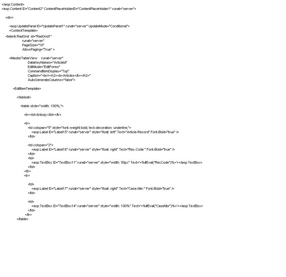 <td><asp:Label runat="server" ID="Label15" Text="Article:"></asp:Label></td>