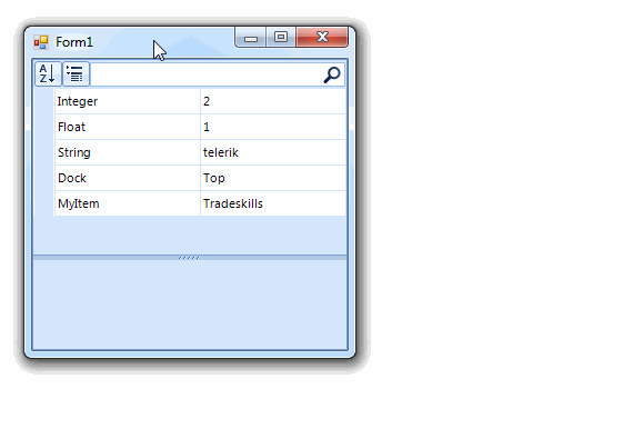 1.public enum TrainerType{ Class = 0, Mounts = 1, Tradeskills = 2, Pets = 3 }This way RadPropertyGrid uses the PropertyGridDropDownListEditor automatically.