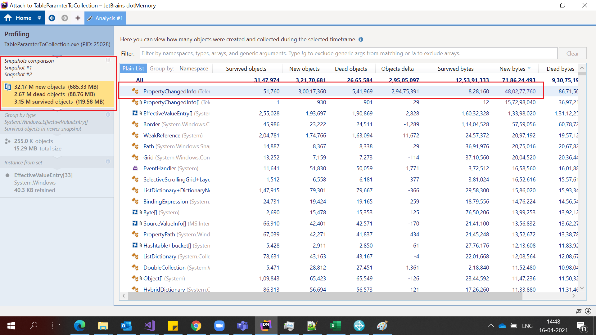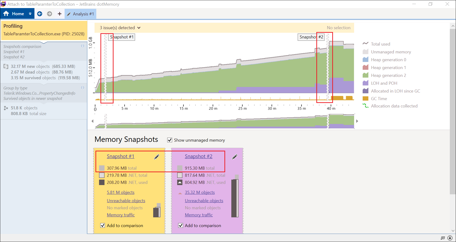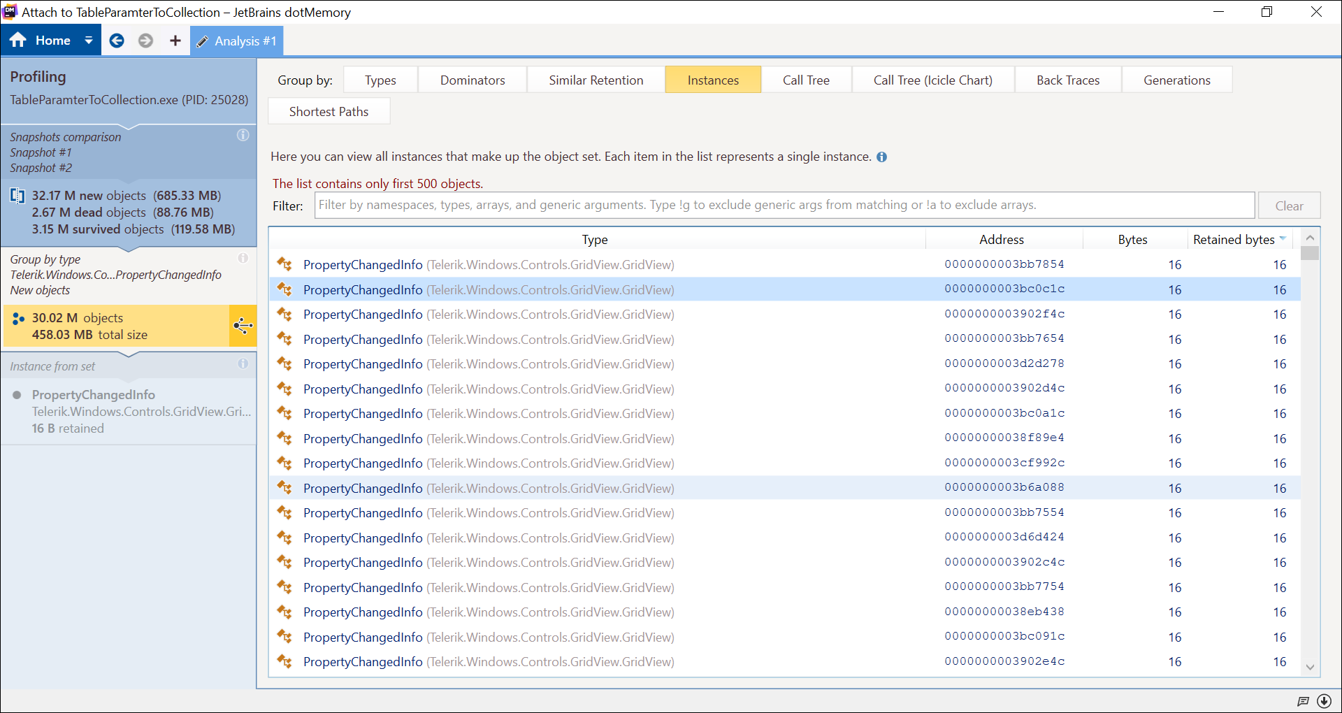 Details: I am using JetBrains dotMemory profiler to investigate memory leak. I have attached result pictures as well.