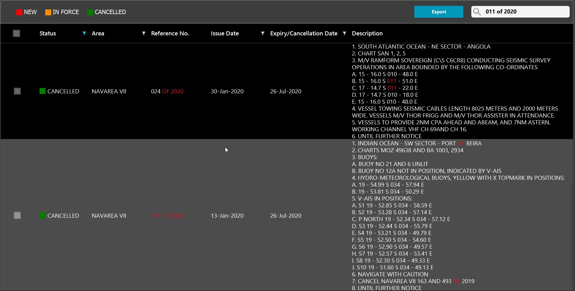 For example if search text is "011 of 2020" then all '011', 'of' and '2020' matches are highlighted, this way if "011 of 2020" is at the last row of grid and there thousands of rows then user will need to scroll to bottom.
