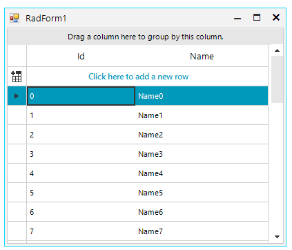 public Form1(){ InitializeComponent(); DataTable dt = new DataTable(); dt.Columns.Add("Id"); dt.Columns.Add("Name"); for (int i = 0; i < 10; i++) { dt.Rows.Add(i, "Item" + i); } using (Telerik.WinControls.UI.RadGridView grid = new Telerik.WinControls.UI.RadGridView()) { grid.AutoGenerateColumns = true; grid.BindingContext = new System.Windows.Forms.BindingContext(); grid.DataSource = dt; GridViewSpreadExport spreadExporter = new GridViewSpreadExport(grid); SpreadExportRenderer exportRenderer = new SpreadExportRenderer(); string fileName = @"..\..\exported" + DateTime.Now.ToLongTimeString().Replace(":", "_") + ".xlsx"; spreadExporter.RunExport(fileName, exportRenderer); Process.Start(fileName); }}I hope this information helps. Should you have further questions I would be glad to help.