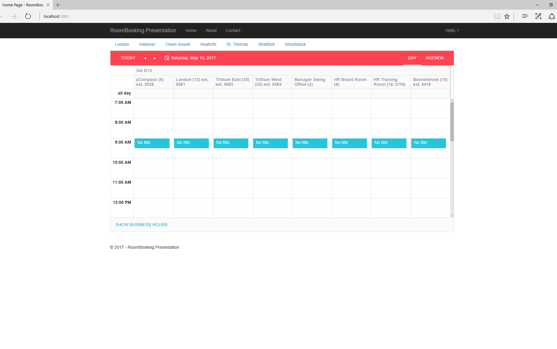 I used the same method in GitHub but I have one problem booking room. when user select office it will bind Resource "Rooms" for that office but when I book it will book all rooms for hour