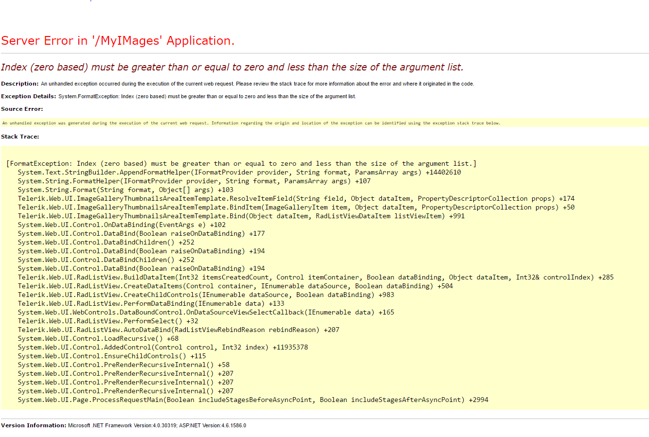RadImageGallery gallery = sender as RadImageGallery;If the images are not displayed correctly I would recommend that you test the RadImageGallery configuration outside RadGrid and use an existing album name for retrieving the data for the test control and see if the images will be displayed.