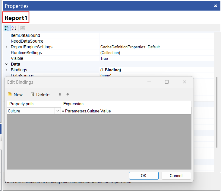 1) this.Bindings.Add(new Telerik.Reporting.Binding("Culture", "= SampleReport.getCulture(ReportItem.DataObject.RawData)"));