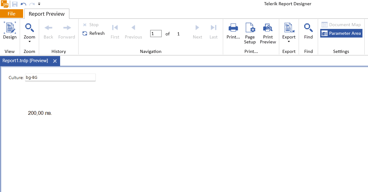 I am evaluating Telerik Reports for our project requirements. I would like to know whether it is possible to set the Culture value of the report (en-US, es-MX, etc.) from a DataSource property. The culture information is returned as part of the data source and we are trying to build the report based on the value returned from the DB during run-time. I tried to set the Culture value in the 2 ways shown below, but both didn't work.