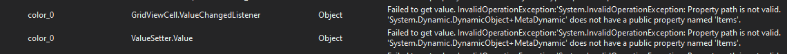 So for these rows/columns, I don't create a new entry in my row dictionary. That leads to the following Get/Set methods inherited from DynamicObject: