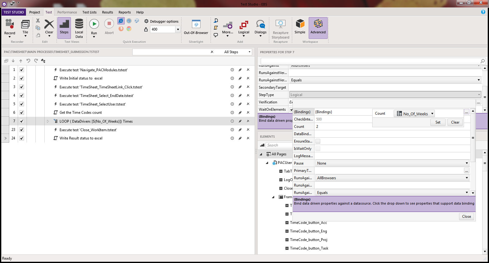 I understand how to set up bindings for things like BaseURL, etc. This works nicely. However, I want to also bind to the "Count" property of one of my loops so that I can use a data driven element to specify how many times for my loop to run. Is this possible?