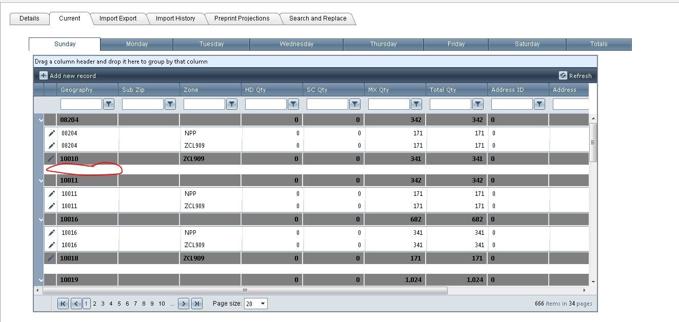 //If the details have no records, make it invisible protected void rgCirculationDetails_ItemCreated(object sender, GridItemEventArgs e) { if (e.Item is GridNoRecordsItem && e.Item.OwnerTableView != rgCirculationDetails.MasterTableView) e.Item.OwnerTableView.Visible = false; } //below code puts an empty string for a parent row that has no children protected void rgCirculationDetails_DetailTableDataBind(object sender, GridDetailTableDataBindEventArgs e) { try { GridDataItem parentItem = e.DetailTableView.ParentItem as GridDataItem; int parentRow = Convert.ToInt32(parentItem.GetDataKeyValue("ParentRow")); string geography = parentItem.GetDataKeyValue("Geography").ToString().Trim(); if (e.DetailTableView.DataMember == "GeographyRows") { if (parentRow == 1) { circulationServiceObj.CircDetail = circulationObj.GetCircDetailsForParentRow(circSetID, geography, dayID).CircDetail; e.DetailTableView.DataSource = circulationServiceObj.CircDetail.CircDetail; } else { e.DetailTableView.DataSource = String.Empty; } } } catch (SoapException ex) { } }