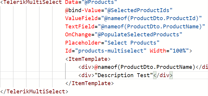 I've tried using the ItemTemplate by placing two divs one for option and other for custom description text and provided a separate class. But nothing worked out.