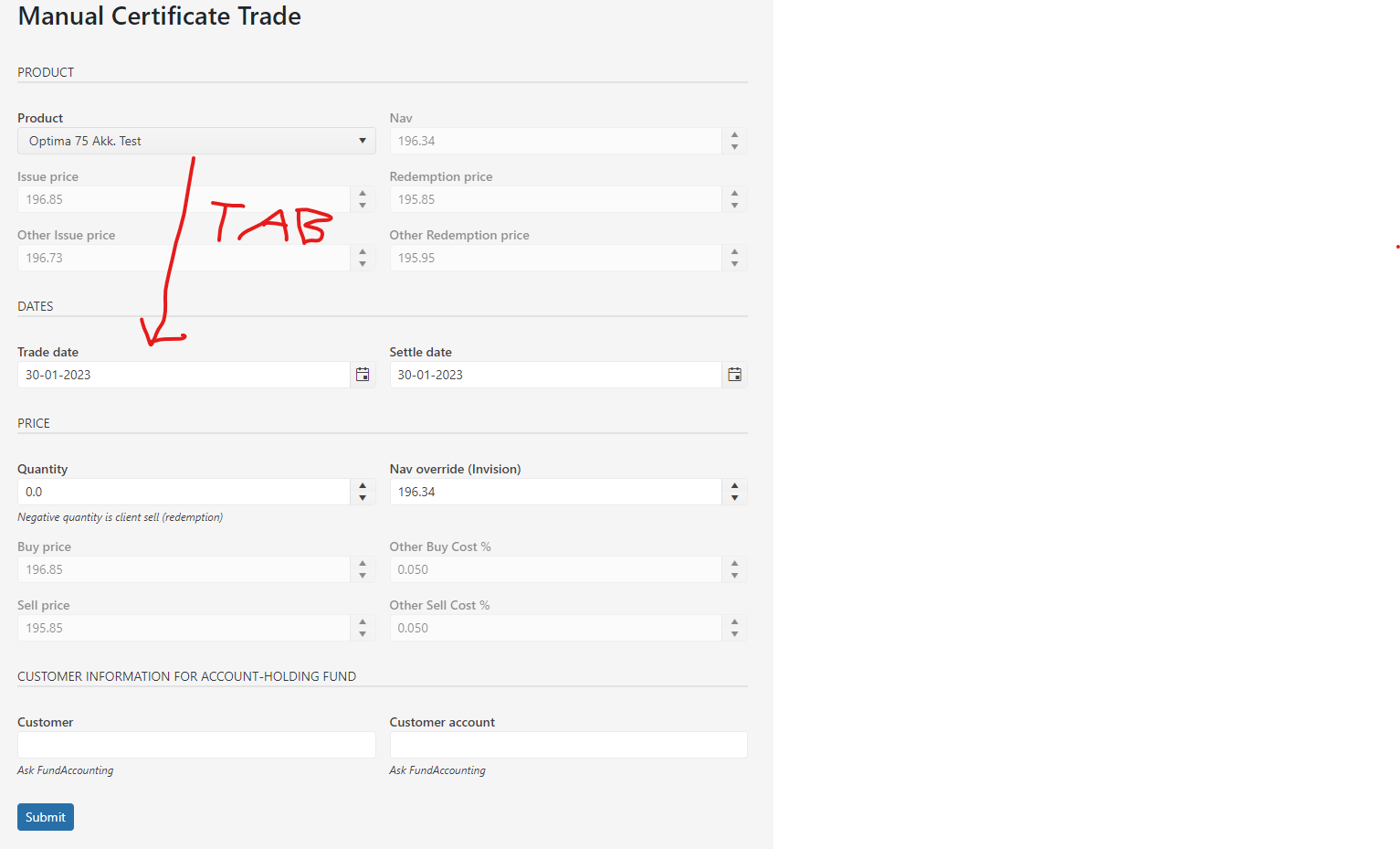 After I select a product I tab to get to the Trade date field. The cursor get's there, but then move back to the product field, why?