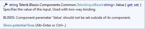 When I try to set 'RefTextBox.Value = value' I get a warning: