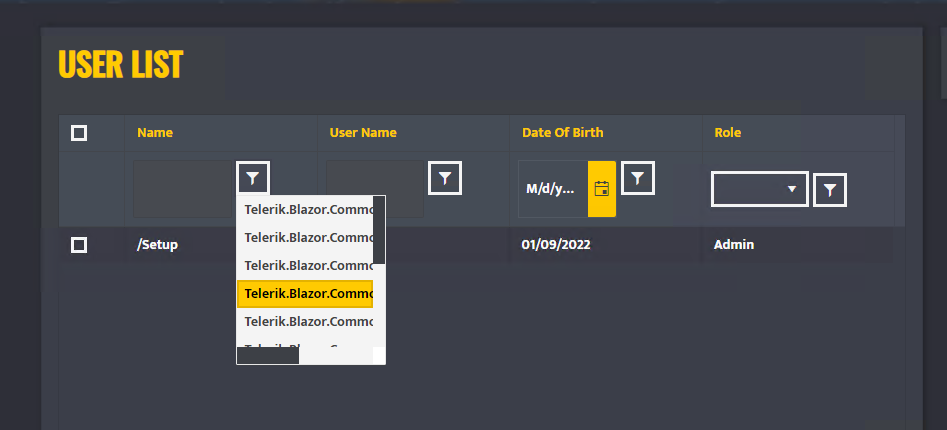 In Grid, I am using default FilterMode="GridFilterMode.FilterRow" for Filtering