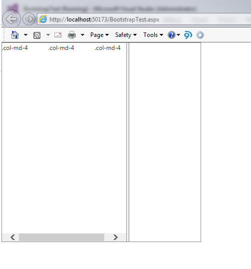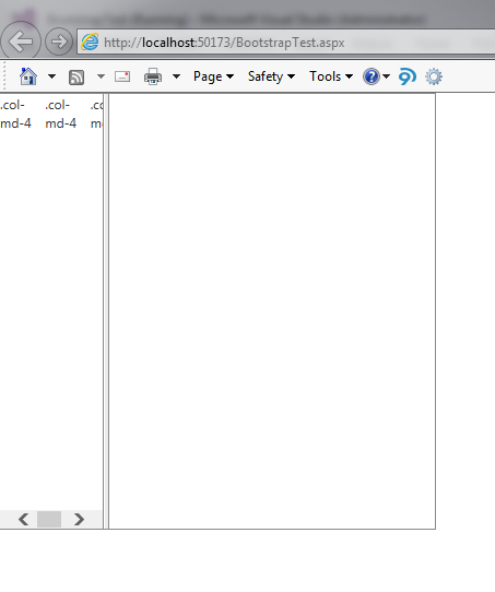<%@ Page Language="C#" AutoEventWireup="true" CodeFile="Default2.aspx.cs" Inherits="Default2" %><!DOCTYPE html><html xmlns="http://www.w3.org/1999/xhtml"><head runat="server"> <title></title></head><body> <form id="form1" runat="server"> <telerik:RadScriptManager ID="RadScriptManager1" runat="server"> <Scripts> <asp:ScriptReference Assembly="Telerik.Web.UI" Name="Telerik.Web.UI.Common.Core.js" /> <asp:ScriptReference Assembly="Telerik.Web.UI" Name="Telerik.Web.UI.Common.jQuery.js" /> <asp:ScriptReference Assembly="Telerik.Web.UI" Name="Telerik.Web.UI.Common.jQueryInclude.js" /> <telerik:RadScriptReference Path="~/Scripts/bootstrap.min.js" /> </Scripts> </telerik:RadScriptManager> <telerik:RadStyleSheetManager ID="RadStyleSheetManager" runat="server"> <StyleSheets> <telerik:StyleSheetReference Path="~/Content/bootstrap.min.css" /> </StyleSheets> </telerik:RadStyleSheetManager> <telerik:RadSplitter ID="RadSplitter1" runat="server"> <telerik:RadPane ID="left" runat="server"> <div class="row"> <div class="col-md-4">.col-md-4</div> <div class="col-md-4">.col-md-4</div> <div class="col-md-4">.col-md-4</div> </div> </telerik:RadPane> <telerik:RadSplitBar ID="RadSplitBar1" runat="server" ></telerik:RadSplitBar> <telerik:RadPane ID="right" runat="server"> </telerik:RadPane> </telerik:RadSplitter> </form></body></html>0