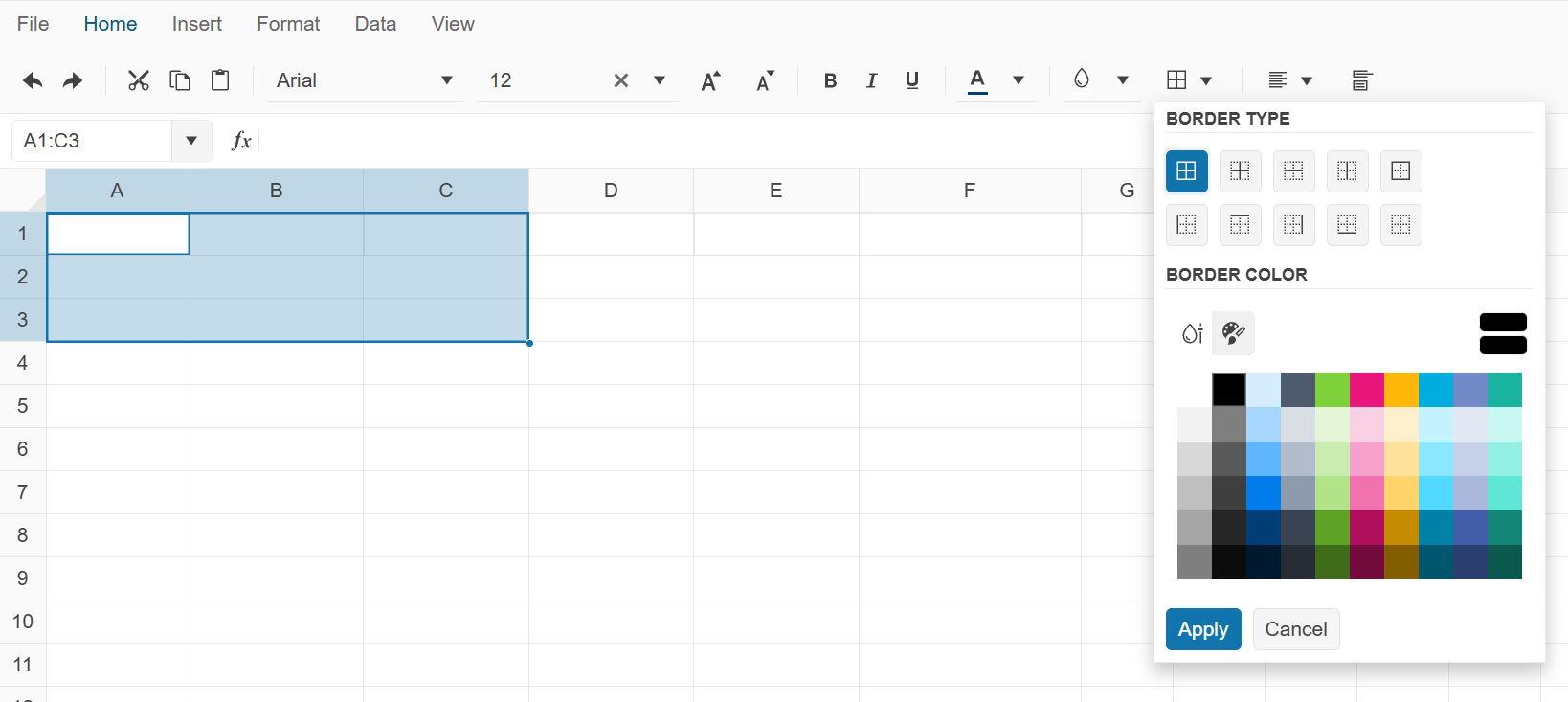 We are using Kendo UI for jQuery Spreadsheet and have encountered a border rendering issue that can be reproduced with a very simple setup and no custom configuration.