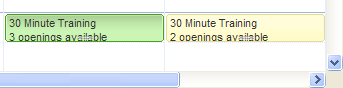 function AppointmentDataBound(sender, args) { var app = args.get_appointment(); if (app.get_attributes().getAttribute("RegisteredMembers") != "") { app.set_cssClass("rsCategoryYellow"); } }If the custom attribute "RegisteredMembers" is not empty, property cssClass is set accordingly.