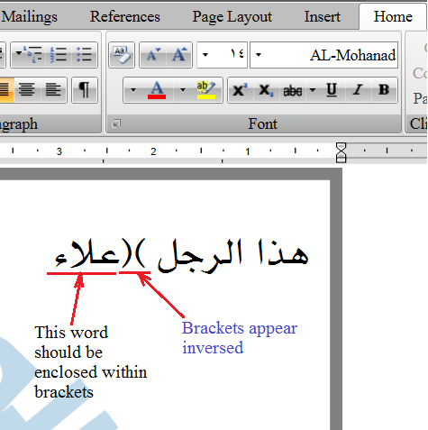 RadRichTextBox control is really a wonderful control, but their are problems when writing in Arabic (right to left). I could override those problems unless for a major problem; where if the user wanted to enclose an Arabic word within brackets, then the direction and position of brackets change, as shown in the attached image.