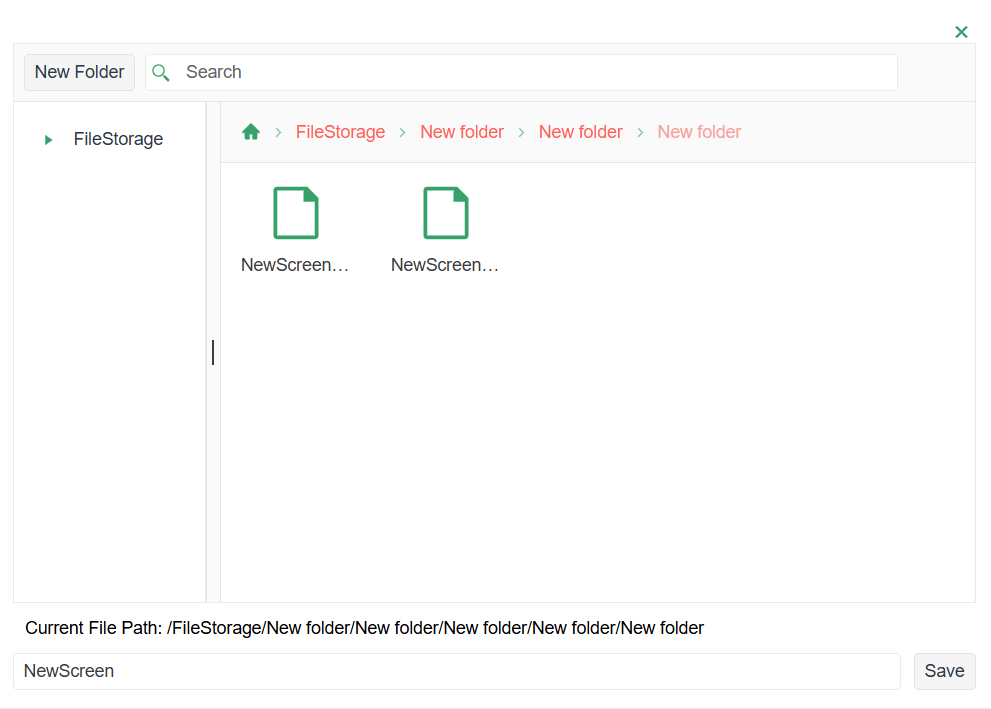 But breadcrumb only displays: "C:/AppName/Storage/FileStorage/New folder/New folder/New folder"