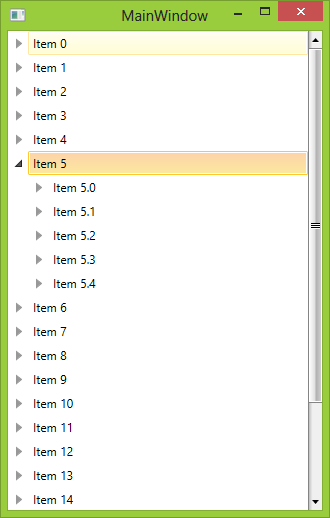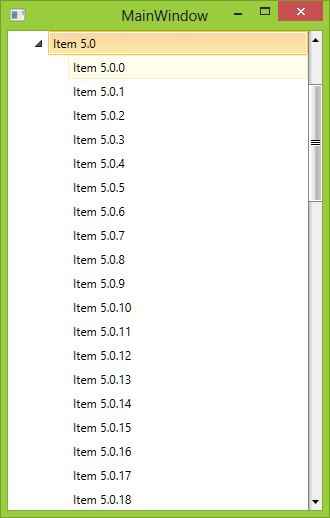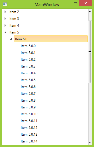 Point p = item.TransformToVisual(tree).Transform(new Point(0, 0));tree.ScrollViewer.ScrollToVerticalOffset(tree.ScrollViewer.VerticalOffset + p.Y);I attached a sample solution demonstrating this approach. However, please note that I have disabled the RadTreeView animations as they delay the RadTreeView.ScrollViewer calculations. When you turn them on, the ScrollToVerticalOffset() logic will be executed before the ScrollViewer can fully calculate the real Height of the RadTreeView as the animations delay the realization of the RadTreeViewItem containers.