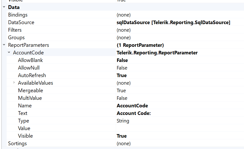 I have a very simple query (below). I have tested in SQL Management Studio as well as the Configure DataSource in the Telerik Report Designer. Both return 19 rows of data. I added the ISNULL as those fields have the ability to be NULL and wanted to eliminate them from causing an error. If there is no parameter in query everything works . When a parameter is filled in I see the title of the TABLE but the rest is blank. I know this is something beyond simple.