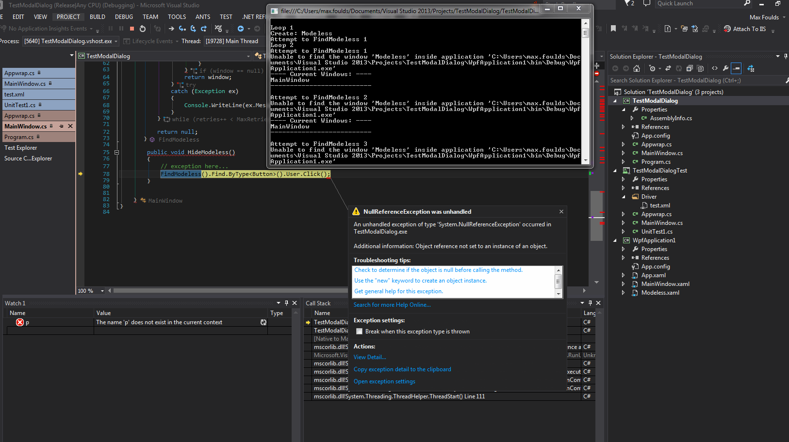 at TestModalDialog.MainWindow.FindModeless() in c:\Users\jem.prince\Documents\Visual Studio 2012\Projects\TestModalDialog\TestModalDialog\MainWindow.cs:line 57
