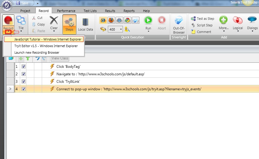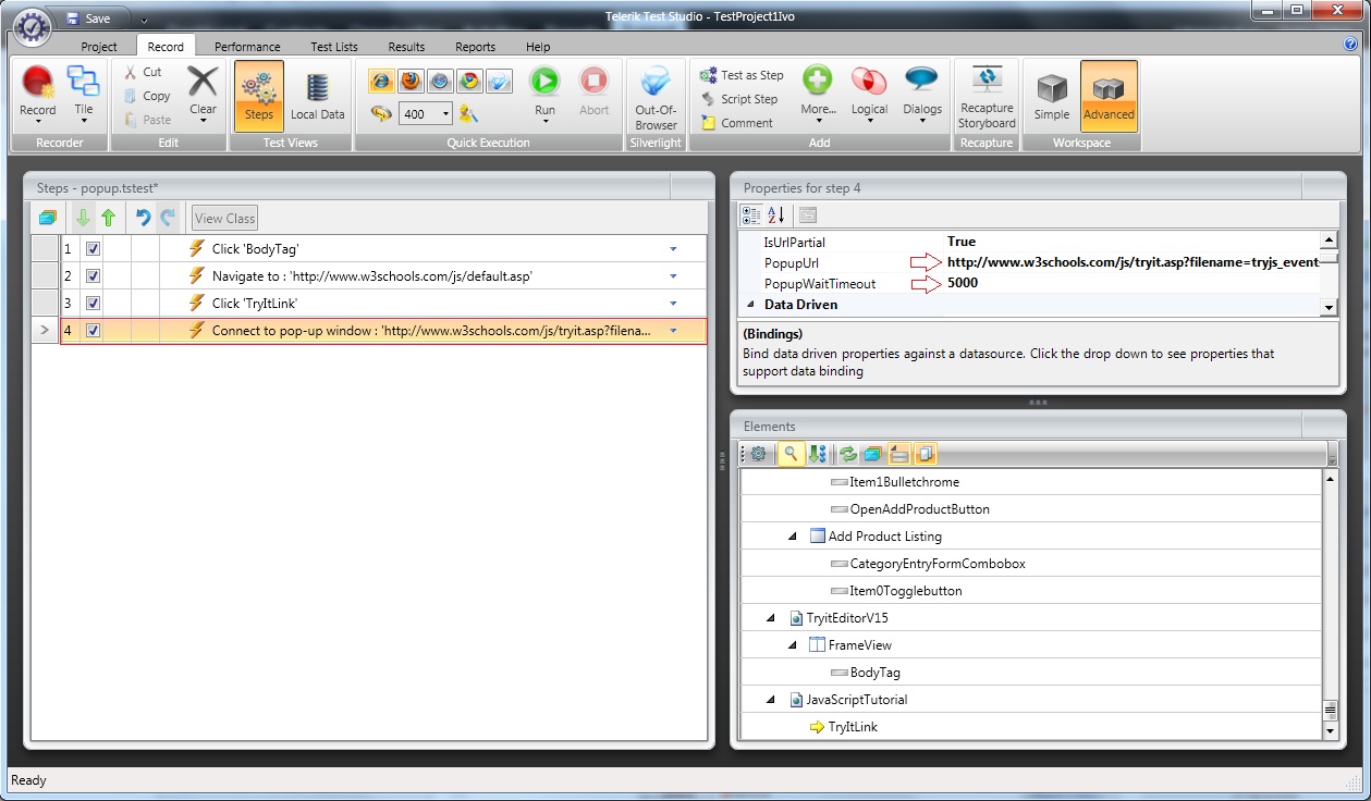 These tests have been working perfectly as is since last June 2011 without error, something changed in Test Studio to cause this new issue? FYI once I have recorded the opening and closing of the pop up I alter the url to the correct one with partial set and include an increased wait. I will try your suggestion and let you know what happens.