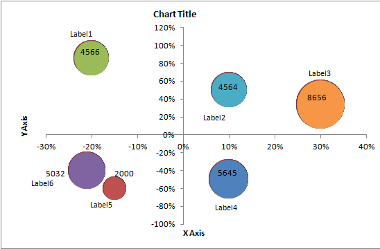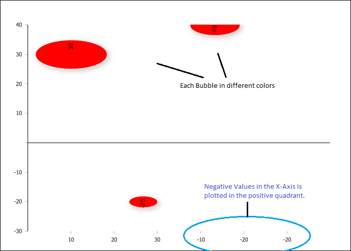 I am creating a demo in rad Bubble Charts. I am facing problem in plotting negative values in the X-Axis. Its plotted in the positive quadrant (Refer Attached Images : ExpectedOutput.png, ActualOutput.png). Secondly, I would like to show bubbles with different colors (as "Vary By Colors" option in Excel). Please tell me how can we achieve these in the rad charts.