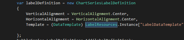 I would like to display the label inside the bubble series, I have changed in the label definition VerticalAlignment to center but it is shown now in the bottom of the bubble.
