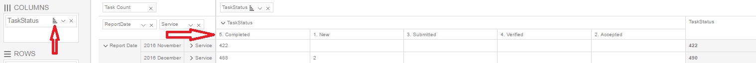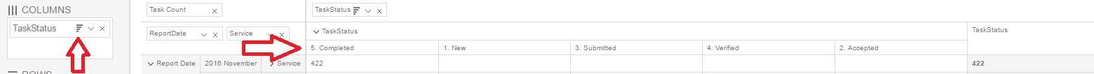 I have a pivot that is mostly functional, however clicking the column block either in the pivot grid or in the configurator indicates the columns can be sorted, but while the icon changes, nothing actually happens. This appears to be a bug.