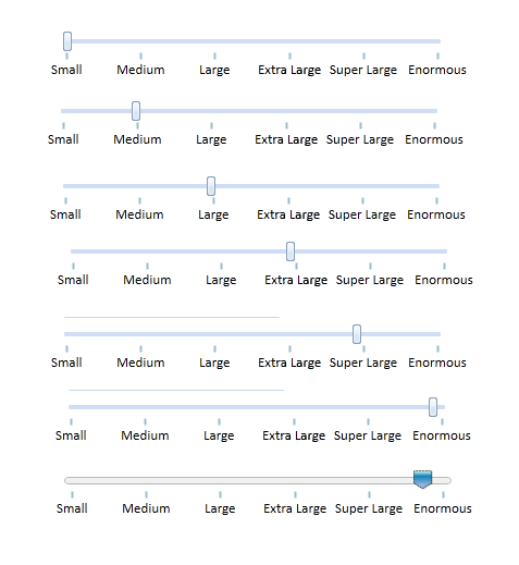 When using tick templates with text the slider thumb is offset to the left of the ticks. The offset increases with the slider value. The higher the value, the larger the offset. See the attached screen shot of a slider using the Windows7 theme. At the bottom of the screen shot you can also see what the slider looks like when I am using my custom style where the thumb is significantly larger. As you can see, it appears that the offset increases with the size of the thumb.