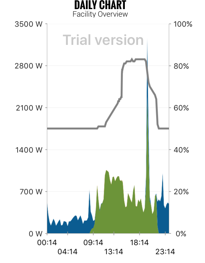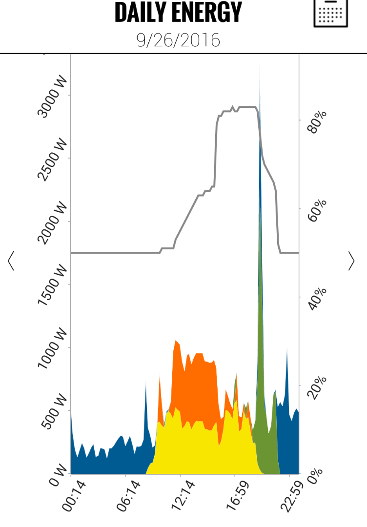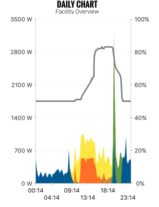 dailyGraphChart.BeginUpdates(); //Modo stack var stackInfo = new TKChartStackInfo(new NSNumber(0), TKChartStackMode.Stack); //Palette var palette = new TKChartPalette(); ////PTHV - YELLOW var serieFVE = new TKChartAreaSeries(pointsFVE.ToArray()); serieFVE.StackInfo = stackInfo; var paletteItemFVE = new TKChartPaletteItem(); paletteItemFVE.Fill = new TKSolidFill(UIColor.Yellow); palette.AddPaletteItem(paletteItemFVE); //serieFVE.Style.Palette = palette; dailyGraphChart.AddSeries(serieFVE); ////CHARGE - ORANGE var serieBatUp = new TKChartAreaSeries(pointsBatUp.ToArray()); serieBatUp.StackInfo = stackInfo; var paletteItemBatUp = new TKChartPaletteItem(); paletteItemBatUp.Fill = new TKSolidFill(UIColor.Orange); palette.AddPaletteItem(paletteItemBatUp); //serieBatUp.Style.Palette = palette; dailyGraphChart.AddSeries(serieBatUp); ////DESCARGA -GREEN var serieBatDown = new TKChartAreaSeries(pointsBatDown.ToArray()); serieBatDown.StackInfo = stackInfo; var paletteItemBatDown = new TKChartPaletteItem(); paletteItemBatDown.Fill = new TKSolidFill(UIColor.Green); palette.AddPaletteItem(paletteItemBatDown); //serieBatDown.Style.Palette = palette; dailyGraphChart.AddSeries(serieBatDown); ////GRID - BLUE var serieGrid = new TKChartAreaSeries(pointsGrid.ToArray()); serieGrid.StackInfo = stackInfo; var paletteItemGrid = new TKChartPaletteItem(); paletteItemGrid.Fill = new TKSolidFill(UIColor.Blue); palette.AddPaletteItem(paletteItemGrid); //serieGrid.Style.Palette = palette; dailyGraphChart.AddSeries(serieGrid); //INYECCION - RED var serieInjection = new TKChartAreaSeries(pointsInjection.ToArray()); serieInjection.StackInfo = stackInfo; var paletteItemInjection = new TKChartPaletteItem(); paletteItemInjection.Fill = new TKSolidFill(UIColor.Red); palette.AddPaletteItem(paletteItemInjection); //serieInjection.Style.Palette = palette; dailyGraphChart.AddSeries(serieInjection); //SOC var serieSOC = new TKChartLineSeries(pointsSOC.ToArray()); serieSOC.Style.Palette = new TKChartPalette(); var paletteItemSOC = new TKChartPaletteItem(); paletteItemSOC.Stroke = new TKStroke(UIColor.Gray, 3f); serieSOC.Style.Palette.AddPaletteItem(paletteItemSOC); //Estable el eje Y serieSOC.YAxis = percentageAxis; dailyGraphChart.AddSeries(serieSOC); //Reload all data dailyGraphChart.EndUpdates();We will investigate in depth this behavior and will estimate a fix for it.