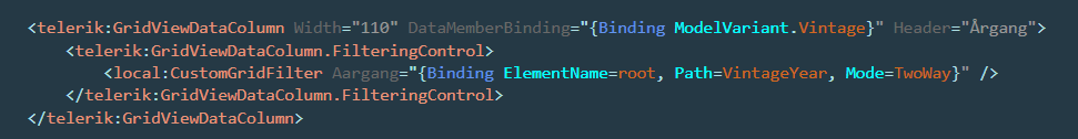 I'm getting this error from 2 XAML documents that both implement a custom Fitler for the RadGridView