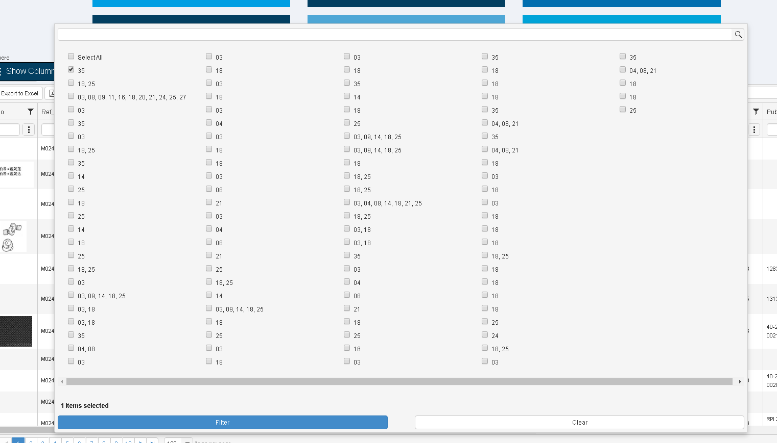 By checking 25, I get the filter contains because I have for example: "25, 26, 27, 28"