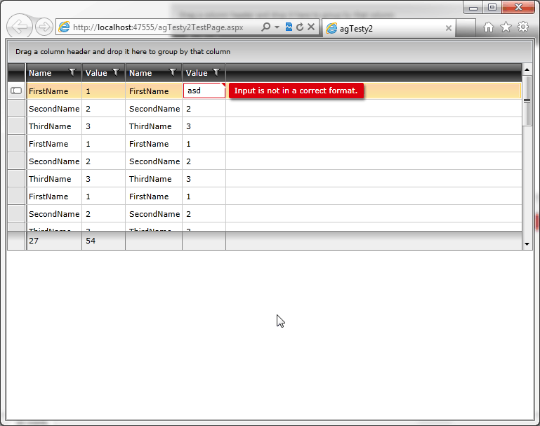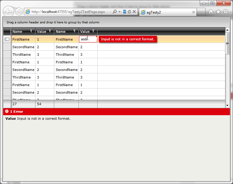 Example if i enter alpha chars in a integer column the summary does not show "bad input format" the cell does highlight the error.