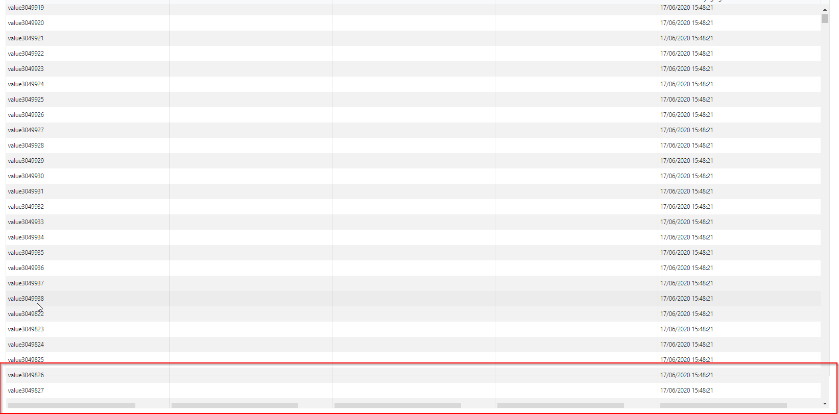 That's a symptom of the same browser limitation. When the element size is hit, the browser does not render it properly and it goes out of the bounds of its parent element. I've updated the KB article with this information (see the Steps To Reproduce section). The solution is still the same - switch to regular paging if you have so many records that you hit the browser limit.