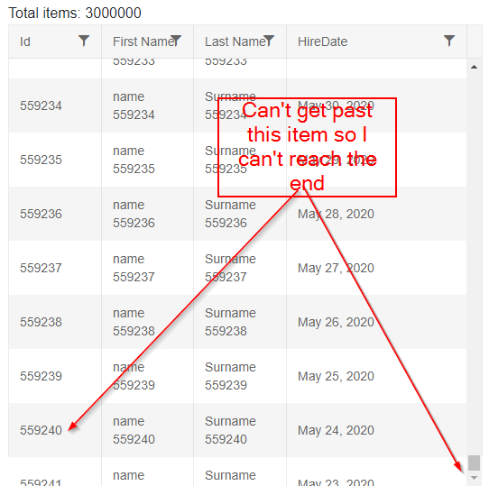 Thank you for the clarification, the virtual scroll has indeed a limitation because if the browser.