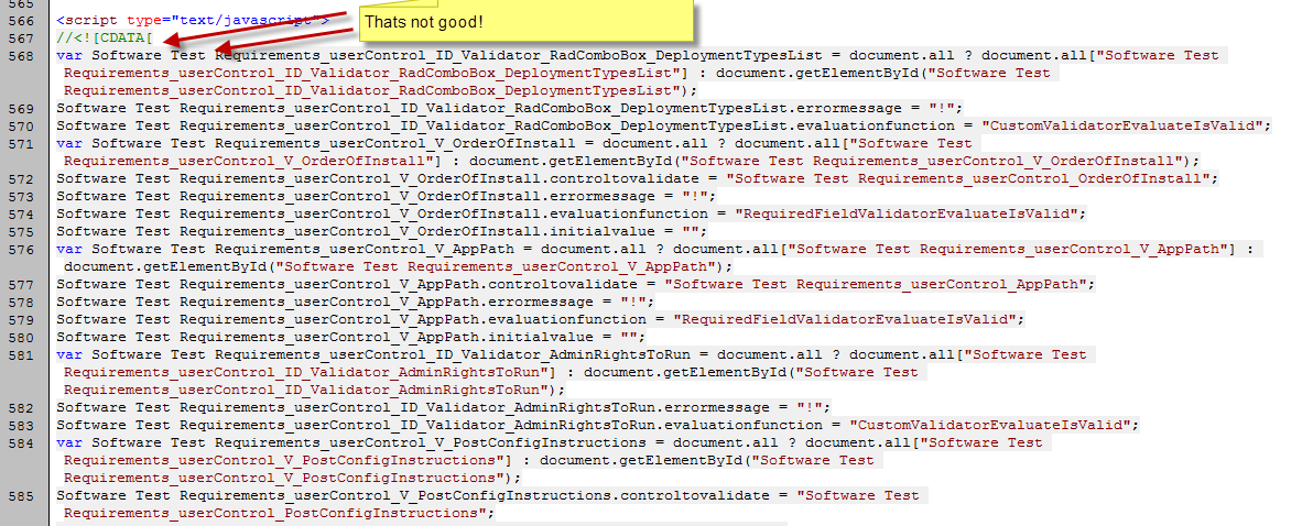 Hi I think I found a bug. When the page has a tab with a space and there are controls that have data validation (RequiredFieldValidator & CustomValidator) stuff blows up ;)