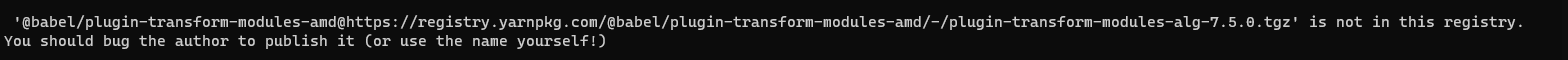2) I see that you are using yarnnpkg registry instead of the default npm registry, that could be a reason for the missing package: