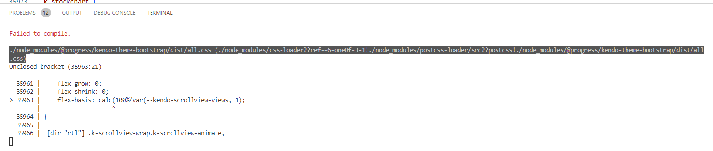 We were getting the same error, tried updating react-scripts and @progress/default (5.2.0) but no luck. We commented out this line (THANKS STEPHEN!!) and it built successfully.