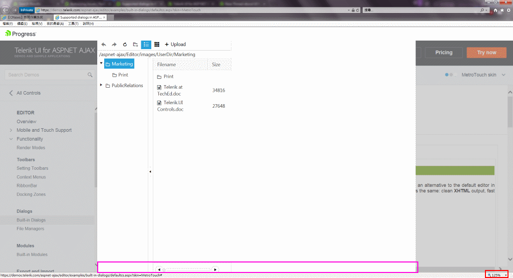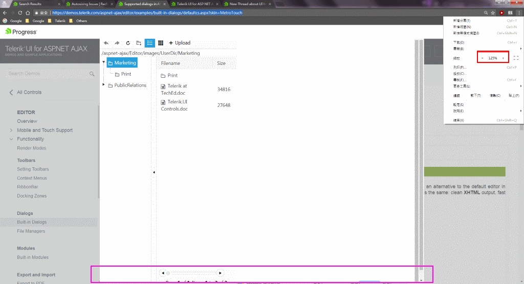 1. Goto "Editor - Built-in Dialogs" page. (https://demos.telerik.com/aspnet-ajax/editor/examples/built-in-dialogs/defaultcs.aspx)