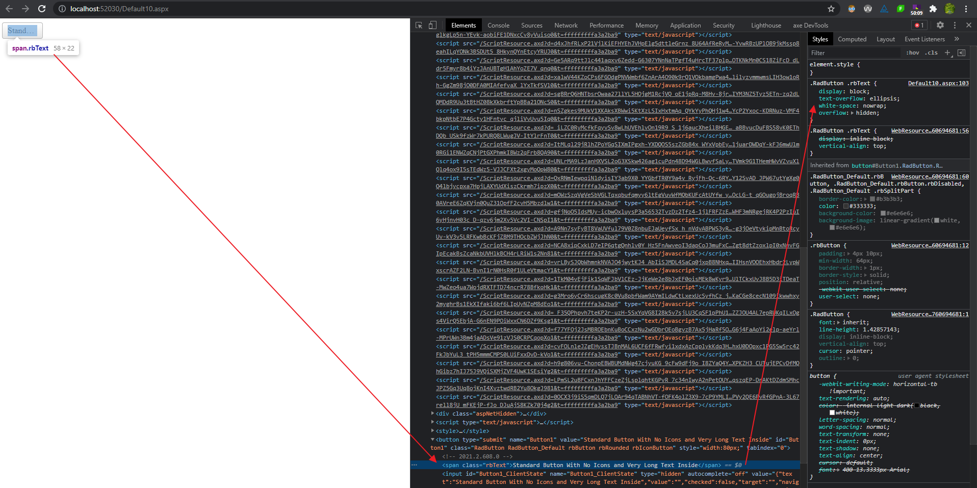 </style><telerik:RadButtonRenderMode="Lightweight"ID="Button1"runat="server"Width="80px"Text="Standard Button With No Icons and Very Long Text Inside"></telerik:RadButton>