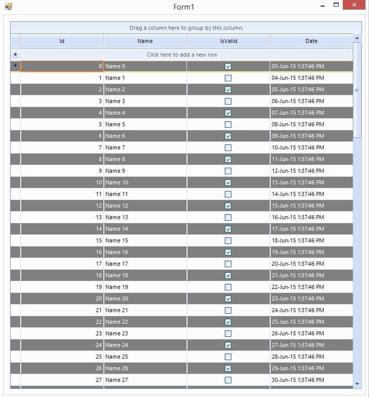 I have a grid (Q2 2014 SP1) with several columns and one checkbox column. The checkbox is the only information that can be modified by the users. Now, depending on the checkbox state, I paint the row using this code (where "IsConcilie" is the checkbox's column name):
