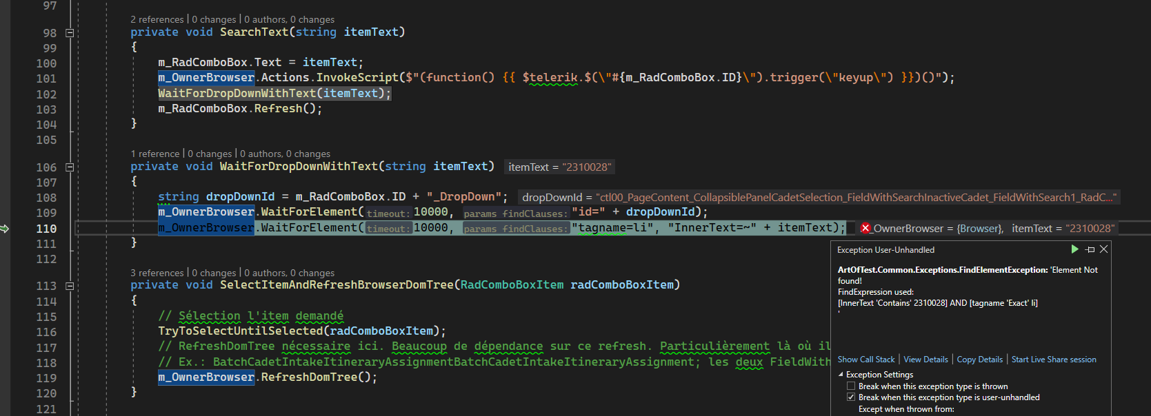 When we type in the RadComboBox the list is filtered as expected, the searched item is found and we get the exception below: