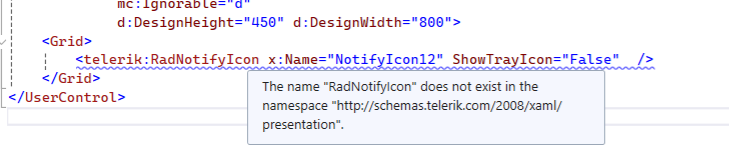 I'm trying to add a RadNotifyIcon into my telerik wpf project, but it keeps throwing the error below in xaml file
